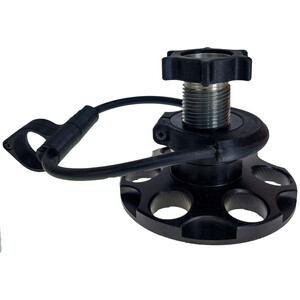 La filettatura ha un campo di regolazione di 25 millimetri. Il fissaggio al cavalletto avviene tramite un anello di gomma.