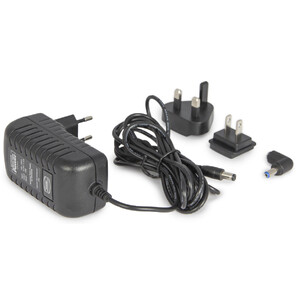 Il nuovo alimentatore Outdoor-Telescope-Power trasforma la comune corrente AC da 90 a 260 V in corrente DC da 12.8 Volt/1.5 A e la tensione, anche in caso di temperature estremamente basse, non si abbassa mai al punto da creare problemi ai componenti elettrici od ai motori della montatura. Con un rendimento continuo di 1.5 A/19 Watt , viene garantita una sufficiente riserva anche a pieno carico, anche con massicce strumentazioni sulla montatura e notevoli cambi di carico. Oltre alla maggiore tensione di base, il raggio di operatività da -25° a +40° è ideale per l'utilizzo all'esterno. Grazie al cavo prolungato da 2.5 m tra alimentatore e presa ad angolo, lo strumento non crea inciampi e rimane completamente a terra. La spina ad angolo protegge l'elettronica del telescopio da danni alla presa ed il trasformatore da danni al cavo o altri pericoli. Se si inciampa accidentalmente nel cavo, la presa non si stacca dal telescopio con uno strattone laterale, ma si libera correttamente dal giunto della spina ad angolo.
