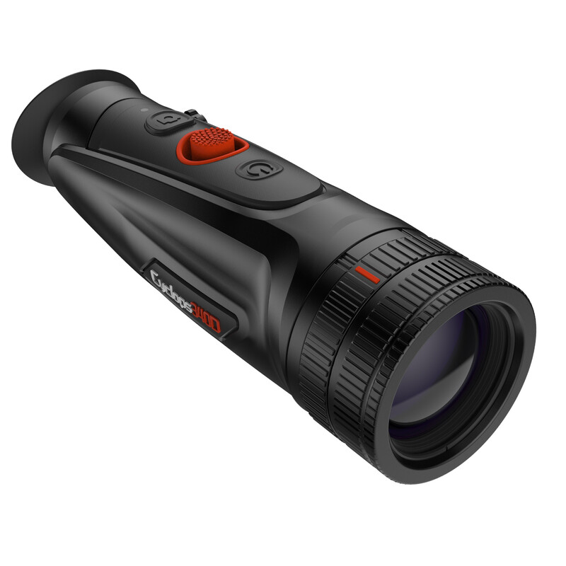 Inoltre, la nuova Cyclops D-Serie è dotata di un sistema a doppia lente, che può essere facilmente regolato tramite l'interruttore rotante sull'obiettivo. Ciò consente una regolazione silenziosa e rapida del fattore di zoom senza compromettere la nitidezza. ThermTec è riuscita con successo a mantenere le vecchie caratteristiche apprezzate e a combinarle con una nuova tecnologia innovativa.