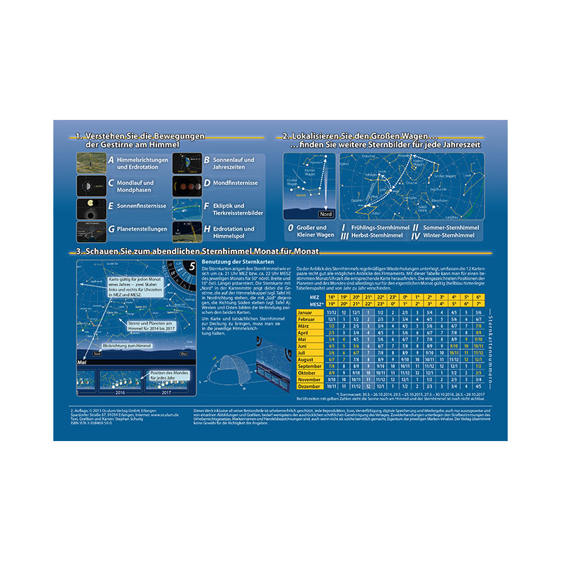 Le immagini introduttive spiegano chiaramente come avvengono i movimenti celesti. Mappe chiare indicano la strada per raggiungere le stelle luminose e le costellazioni, senza sovraccaricare l'utente con informazioni dettagliate. Su di esse sono segnate anche le posizioni dei pianeti e della luna per i prossimi anni.