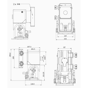 - La sella di montaggio consente l'utilizzo di guide prismatiche secondo lo standard Vixen o Losmandy. In questo modo è possibile montare quasi tutti i telescopi.