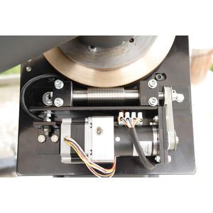 La struttura della montatura è il risultato dello studio dei più diversi tipi di montature nuove e vecchie, con i loro vantaggi e svantaggi. Oltre alla precisione già menzionata, doveva avere un'elevata capacità di carico ed essere comunque trasportabile. Quest'ultimo aspetto ha dovuto giocare un ruolo secondario a favore dell'elevata capacità di carico. Ciò non sorprende, poiché per la montatura viene utilizzato esclusivamente acciaio, precedentemente rivestito con una vernice in polvere colorata come protezione contro la corrosione. Ciò ha il vantaggio, oltre alla grande resistenza e malleabilità, di garantire una dilatazione uniforme. È noto infatti che materiali diversi hanno coefficienti di dilatazione termica diversi e a temperature diverse possono causare attriti inutili e quindi difficoltà di utilizzo. La montatura molto rigida e stabile ha un elevato smorzamento delle vibrazioni, il che rende l'astrofotografia a lungo termine un gioco da ragazzi. Le ruote a vite senza fine in bronzo e i giunti di slittamento regolabili con precisione consentono un posizionamento e un inseguimento molto accurati tramite motori passo-passo e un sistema di controllo adeguato.