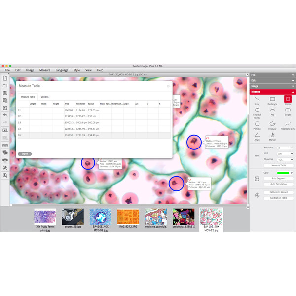 - Una versione completa del software Motic Images Plus fornisce tutti gli strumenti di cui potrete aver bisogno per quantificare, misurare, prendere nota, insegnare, imparare e molto altro ancora.