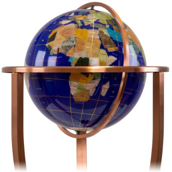 Il prezioso mappamondo poggia stabilmente su una struttura (color oro o bronzo) con piedini leggermente ricurvi che completano perfettamente il globo dalla forma elegante. Sotto la sfera del globo è inoltre fissata una bussola che indica a colpo d'occhio in quale direzione si sta guardando. In questo modo è possibile scoprire con pochi semplici gesti dove si trova il nord o il sud. Un gadget divertente, unico nel suo genere.