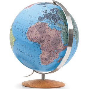 Il globo luminoso laminato a mano CTN 37 02 combina l'artigianato tradizionale con un design contemporaneo per creare un globo che informa e ispira. La sua sfera di 37 cm è stata realizzata con un accurato processo di laminazione a mano - i segmenti della mappa sono stati applicati singolarmente e adattati con precisione - rendendo ogni globo un pezzo unico. Dotato di un'elegante base in legno di quercia e di un meridiano in acciaio inossidabile spazzolato, si integra con stile in qualsiasi ambiente.