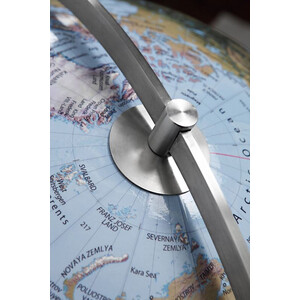 Questo globo da terra estremamente rappresentativo combina sapientemente tradizione e modernità. Una sfera tradizionale rivestita a mano con un diametro impressionante di 75 cm è abbinata a un supporto dal design moderno in acciaio inossidabile spazzolato.