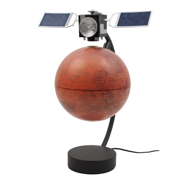 Il globo magnetico è un imponente strumento high-tech. Un sensore di campo magnetico misura costantemente l'altezza di levitazione della sfera del globo. Il sensore e l'elettronica nella base controllano un elettromagnete nella parte superiore della staffa e regolano così la distanza tra la sfera del globo e la testa magnetica. Un magnete permanente aggiuntivo nella base mantiene la sfera del globo saldamente fissata al supporto quando il meccanismo di levitazione è disattivato.