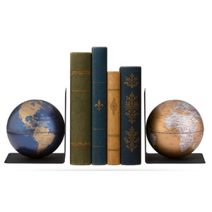 Due eleganti reggilibri in metallo con globi uniscono funzionalità e spirito di scoperta.