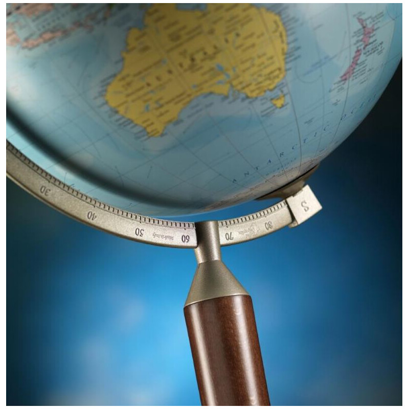 Con Vasco Da Gama, navigatore e scopritore portoghese, una nave europea riuscì per la prima volta a raggiungere l'India via mare. Questo globo da terra porta il suo nome. La mappa, aggiornata dal nostro team di cartografi, mostra numerosi dettagli su città, capitali, fiumi, mari e montagne. La base in legno e il meridiano in alluminio garantiscono il massimo equilibrio e stabilità.