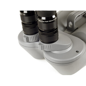 Questo binocolo SA-Apo a 2 lenti con eccellente correzione sferica offre un contrasto estremamente elevato. La correzione del colore, il contrasto e la trasmissione sono pari a quelli di altre lenti giapponesi che costano molto di più. Nella dotazione di base è incluso 1 set di oculari da 18 mm.