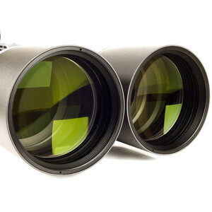 Questi binocoli consentono, ad esempio, un'osservazione molto dettagliata della luna, nonché l'immersione in regioni nebulose, ammassi stellari e l'osservazione dei pianeti lontani. Grazie alle eccellenti ottiche apocromatiche in vetro SD, gli oggetti vengono riprodotti con estrema nitidezza e contrasto elevato. Questa classe di dispositivi può essere montata su treppiedi fotografici (consigliato vivamente) ed è dotata di una robusta impugnatura. Grazie alla possibilità di cambiare gli oculari, questi binocoli sono molto più flessibili rispetto ai modelli con ingrandimento fisso. L'intera struttura del corpo è solida e resistente.