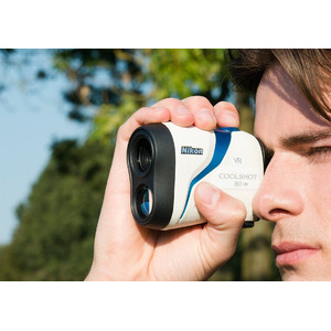 Grazie al sistema VR (riduzione vibrazioni) di Nikon, le vibrazioni dell'immagine nel mirino causate dal movimento delle mani vengono ridotte e contemporaneamente il laser irradiato viene allineato. La facilità di indirizzare il laser sul bersaglio più rapidamente e facilmente ha migliorato sensibilmente le misurazioni verso un piccolo soggetto come una bandierina. Il tutto avviene grazie alle tecnologie originali di Nikon, una fusione della tecnologia VR e della funzione di misurazione ad alte prestazioni.