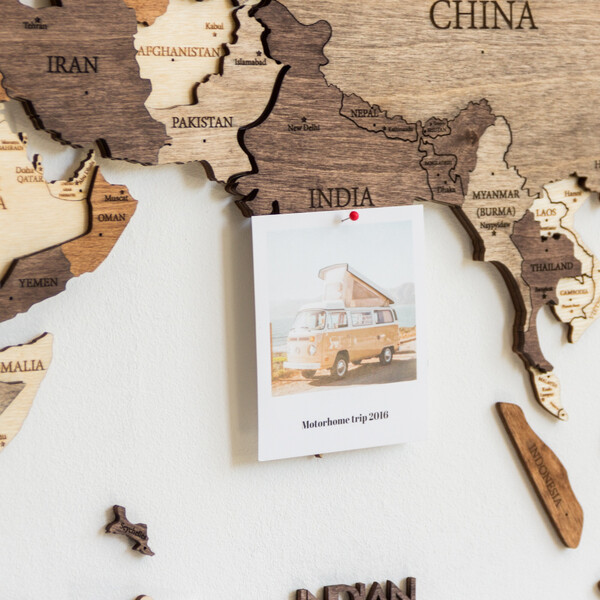 La mappa in legno conferisce alla tua parete un tocco di personalità. Segna con i puntine verdi i luoghi già visitati e con quelli rossi le tue prossime destinazioni. Le puntine sono incluse nella confezione.
