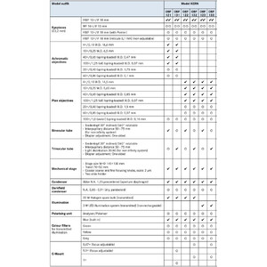 • Si può scegliere fra una vasta gamma di accessori come oculari, obiettivi, filtri a colori, un condensatore di campo oscuro e un'unità di polarizzazione semplice.