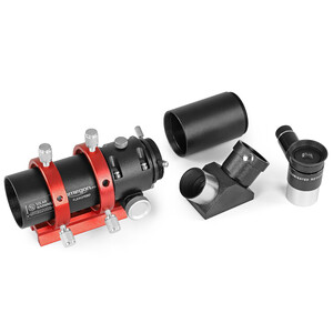 - Invece di un cercatore, il set può essere utilizzato anche come cannocchiale per le osservazioni diurne. Può montarlo su un treppiedi fotografici, ad esempio, con Omegon Binario di montaggio per cercatore per 72/400 Quintuplet APO.