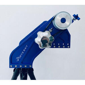 Questo supporto a forcella per binocoli di grandi dimensioni ha una regolazione fine tramite una cinghia dentata. Ciò consente una regolazione precisa e l'inseguimento di un oggetto, sia per l'osservazione del cielo che del paesaggio. La regolazione micrometrica fine può anche essere disinserita per un panning veloce.
