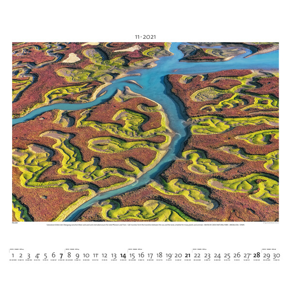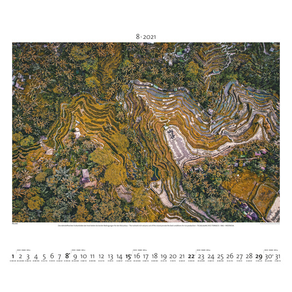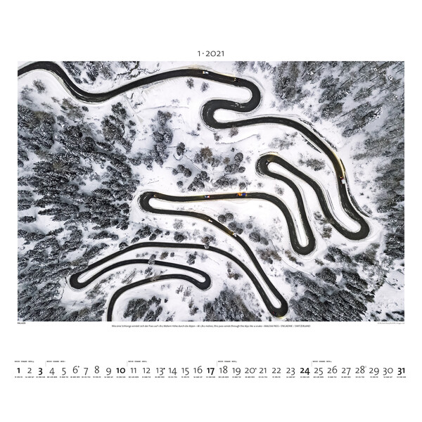 Il formato generoso di questo calendario da parete mette in risalto le 12 suggestive fotografie aeree. Il calendario sottostante è volutamente discreto per lasciare ampio spazio alle immagini.