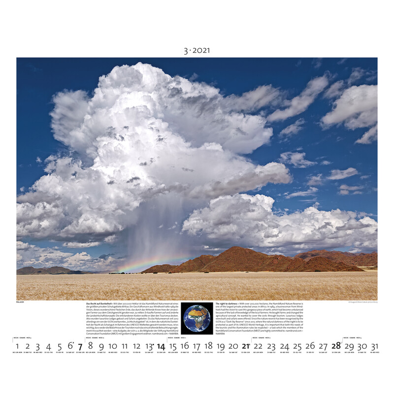 Questi studi paesaggistici mozzafiato e le affascinanti fotografie di animali realizzate da rinomati fotografi di tutto il mondo mostrano tutta la bellezza e la diversità della Terra. Un calendario che invita a proteggere il pianeta e presenta, in testi dettagliati, anche l'importante lavoro delle singole organizzazioni ambientaliste. Una dichiarazione d'amore al "Pianeta Blu". Con testi informativi ed esempi di progetti di conservazione della natura.