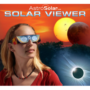 Il Solar Viewer di Baader Planetario è un prodotto di alta qualità, ideale per l'osservazione solare a occhio nudo. Probabilmente l'uso più popolare di questi occhiali per la visione solare è durante un'eclissi solare. Mentre la luna si sposta lentamente davanti al sole, può osservare facilmente la graduale scomparsa del sole attraverso il Solar Viewer. L'evento spettacolare di un'eclissi solare totale, che di solito dura solo pochi minuti, dovrebbe essere goduto senza occhiali e in modo sicuro a occhio nudo.