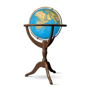 Illuminated geographical globe. This distinguished globe has a dignified and tasteful appearance due to its distinctive "antique" look, rotating die-cast meridian and solid hardwood base. This globe makes a statement in any setting due to its 114cm/45" height.diameter:50 cm