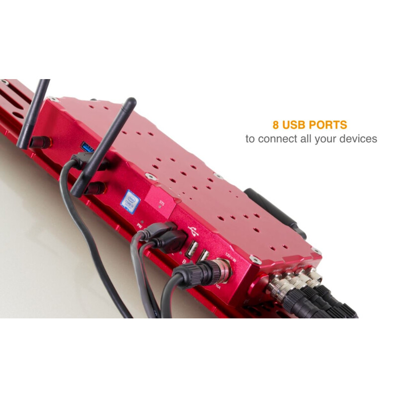 Incorporato nell'esclusivo alloggiamento in alluminio PLUS, il computer EAGLE4 è dotato del potente sistema operativo Windows 10 Enterprise, veloce memoria SSD, 8 porte USB, un avanzato sistema di distribuzione dell'alimentazione per un massimo di 7 strumenti, una rete WLAN dedicata per il controllo wireless del telescopio, un sensore GPS con antenna ad alto guadagno per il rilevamento automatico della posizione e dell'ora, un sensore EYE per misurare la luminosità del cielo, la modalità DARK senza LED sull'EAGLE e molto altro ancora!