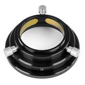 Nell'astrofotografia è estremamente importante che il collegamento tra il telescopio e la fotocamera sia stabile. Molti connettori tendono a inclinare leggermente la fotocamera, rendendo sfocata una parte dell'immagine. Per questo motivo gli astrofotografi cercano di avvitare saldamente la fotocamera al telescopio. Tuttavia, in questo modo non è più possibile, ad esempio, posizionare una galassia in posizione laterale in modo che risulti ben visibile in diagonale nell'immagine. È qui che entra in gioco il rotatore dell'immagine. Con un rotatore dell'immagine è possibile ruotare la fotocamera o altri accessori nell'orientamento desiderato senza perdere la messa a fuoco. L'altezza ridotta del rotatore ne consente l'utilizzo anche con sistemi con backfocus ridotto.