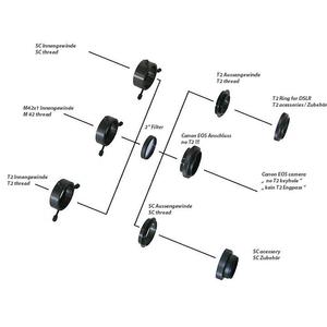 Il sistema a rotazione TS realizza il collegamento tra il telescopio e la fotocamera o un altro adattatore. Tutto ciò con una struttura molto compatta e con la possibilità di montare filtri 2''.
