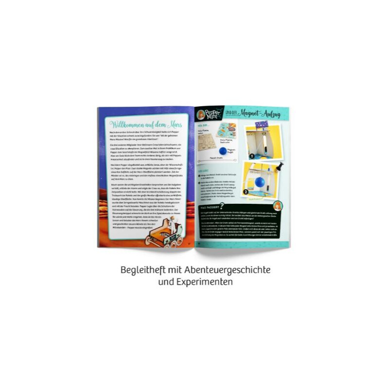 Pepper Mint erzählt in einer aufregenden Geschichte von ihrer Weltraum-Mission zum Mars und führt zugleich Schritt für Schritt durch die Experimente: Wie werden mit magnetischem Pulver unsichtbare Magnetfeld-Linien sichtbar? Wie bringt man Pepper zum Schweben? Welche magnetischen Kräfte steuern den Mars-Rover? Wie wird magnetischer Schleim hergestellt? Mit „Pepper Mint und das Mars-Abenteuer“ aus der MINT-Reihe erforschen Kinder spielerisch und unterhaltsam den geheimnisvollen Magnetismus!