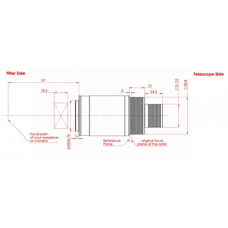 Il telecentrico TZ-4S è stato sviluppato appositamente per il sito Baader Filtro solare SunDancer II TZ-3S H-alpha 2"/1,25" e sostituisce il sistema telecentrico 3x incorporato. Ciò significa che il filtro h-alpha SunDancer II può essere utilizzato anche su telescopi con f/7-f/8 con un rapporto focale ottimale di circa f/30.