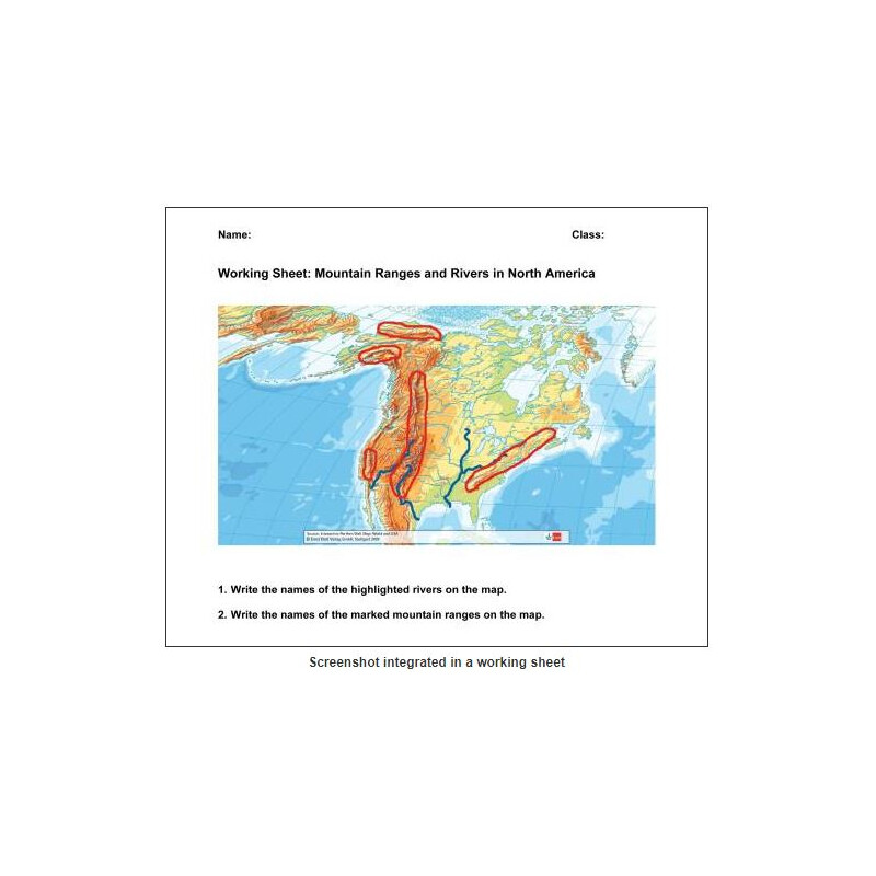 La mappa interattiva Klett Perthes del mondo e degli Stati Uniti offre dieci mappe per presentazioni e scopi didattici: tre mappe politiche e due fisiche degli Stati Uniti e del mondo.