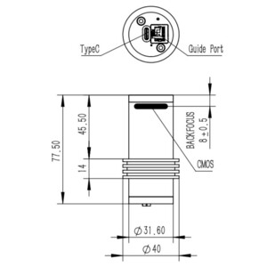 La fotocamera può essere facilmente inserita nel focheggiatore da 1,25 pollici, ma viene fornita anche con un adattatore c-mount.
