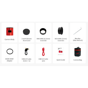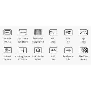 Il buffer di immagini interno da 512 MB DDR3 riduce efficacemente la pressione sul trasferimento del computer. Questo è di grande aiuto per la fotografia planetaria, dove spesso è necessario scrivere grandi quantità di dati in breve tempo. Alcune delle fotocamere per l'astrofotografia deep-sky oggi sul mercato hanno spesso solo 256 MB. Questo è un vero e proprio collo di bottiglia e una fonte di errori di immagine.
