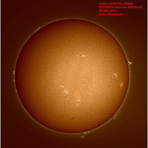 Il LS40THa è un telescopio per l'osservazione del Sole nella riga H-alfa con un'apertura di 40 mm (senza ostruzione centrale!) e una lunghezza focale di 400 mm.