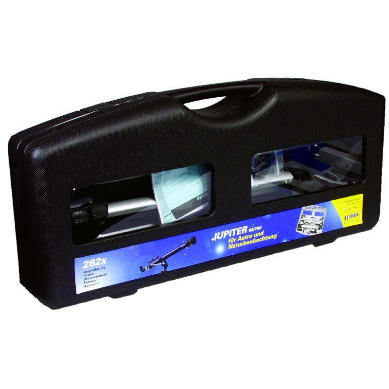 Il Jupiter è un robusto telescopio a lenti riccamente accessoriato. Un suo punto vincente: grazie alla pratica custodia rigida lo si può trasportare facilmente.