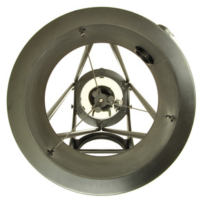 Cella dello specchio principale: uno specchio perfetto può funzionare solo quando è adeguatamente supportato. A seconda delle dimensioni dello specchio, i Taurus Dobson utilizzano 9, 18 o addirittura 27 (sul 20 pollici) punti di supporto in nylon per distribuire il peso dello specchio in modo ottimale. In posizione orizzontale, lo specchio poggia su una fascia speciale che distribuisce il peso in modo uniforme. Il supporto laterale è fornito da tre staffe stabili. L'intero meccanismo della cella a specchio è realizzato in lega di alluminio verniciato a polvere. Durante la collimazione (regolazione), l'intera cornice viene spostata insieme allo specchio che abbraccia, mantenendo lo specchio sempre nelle stesse condizioni ideali. Inoltre lo specchio principale può essere facilmente rimosso per la pulizia perché non è incollato. La costruzione aperta permette un raffreddamento piu' rapido dello specchio. Il raccordo secondario dello specchio è dotato di un separatore che impedisce le tensioni.