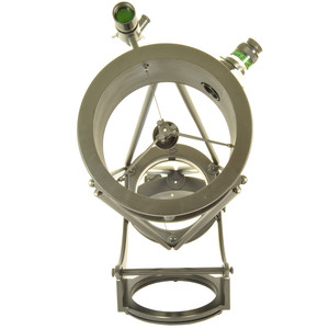 Facile da usare: i cuscinetti in teflon e un cuscinetto speciale della piastra di base permettono un inseguimento in gran parte senza attrito anche ad alti ingrandimenti. La base montata ha una regolazione della resistenza rotazionale, in modo da poter regolare il telescopio secondo le proprie preferenze. Una raffica di vento o un intoppo accidentale non sposteranno il telescopio. La cella superiore può essere montata in due posizioni cambiando la posizione del focheggiatore, consentendo una comoda osservazione dallo zenit all'orizzonte. Il telescopio è progettato in modo che lo specchio principale si muova il più vicino possibile al suolo, in modo da ridurre al minimo l'altezza massima su cui si trova l'oculare.