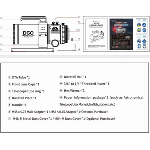 L'HOPE D60 combina la semplicità adatta ai principianti con prestazioni professionali, rendendolo un telescopio che vi accompagnerà nel vostro viaggio nell'astronomia.